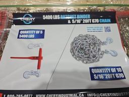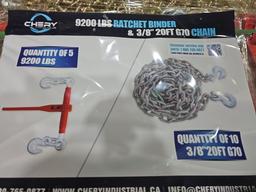 (5) RATCHET BINDER OF 9200 LBS (10) 3/8 CHAINS OF 20' G70 *** UNUSED ***