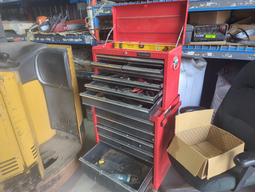 HUSKY HEAD AND LOW TOOLBOX WITH A FEW TOOLS (USED)